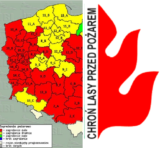 Zagrożenie pożarowe ustalane jest codziennie ( od 1 marca, po ustąpieniu pokrywy śnieżnej, do dznia 30 września) na godzine 9:00 i 13:00 przez Instytut Badawczy Leśnictwa. Nadleśnictwo Karczma Borowa leży w strefie 9_D